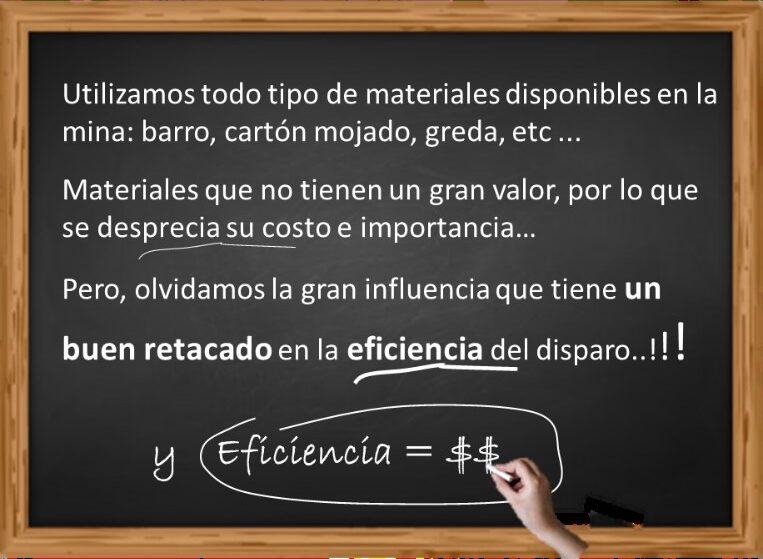 La experiencia demuestra que una de las principales causas de pérdidas de energía del explosivo es la falta de confinamiento al momento de la detonación, debido al comportamiento natural que tienen los materiales con que habitualmente se elaboran los tacos – greda, barro, cartón mojado, etc…-, cuando son sometidos a las temperaturas siderales y presiones de los gases generados en la reacción química.